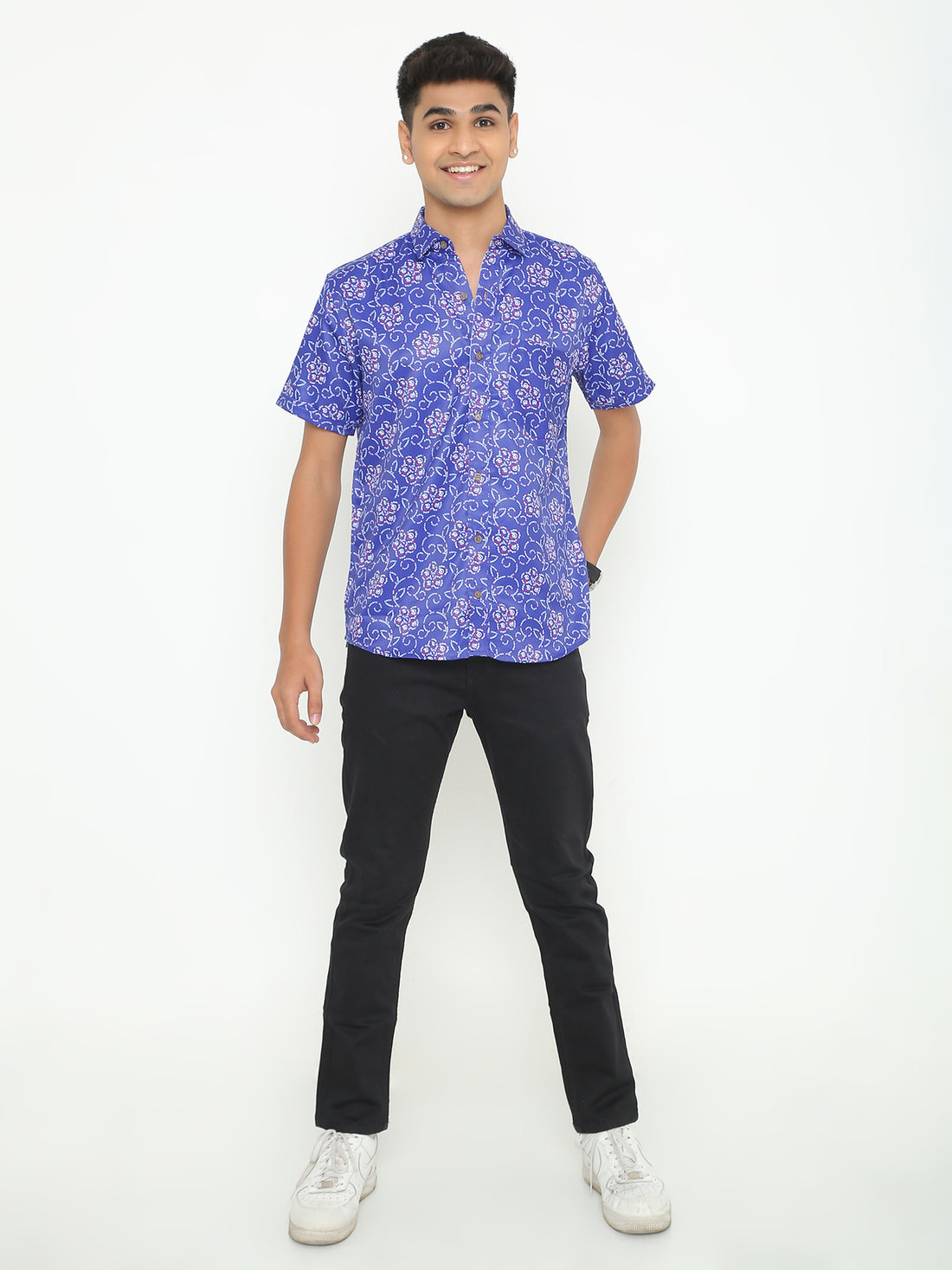 Platon Blue Floral Printed Casuals Shirt